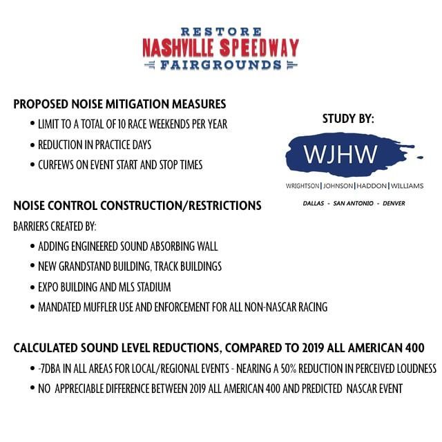 Globally renowned sound engineering firm Wrightson, Haddon, Johnson, and Williams (WHJW) has conducted extensive study of Nashville Fairgrounds Speedway and the surrounding neighborhood communities. Starting in 2019, WHJW recorded the auto racing sounds from the tracks and has evaluated the effects of a sound mitigation program proposed by Bristol Motor Speedway to reduce racing sounds. According to the findings by WHJW...